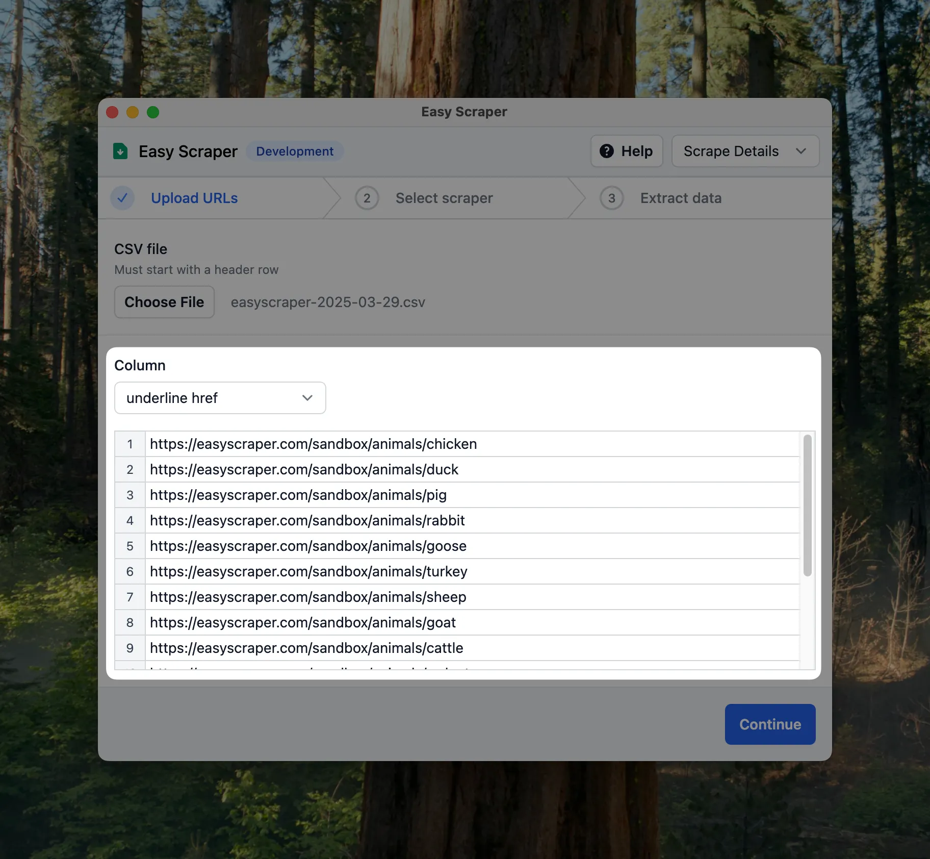 上传包含 URL 列表的 CSV 文件