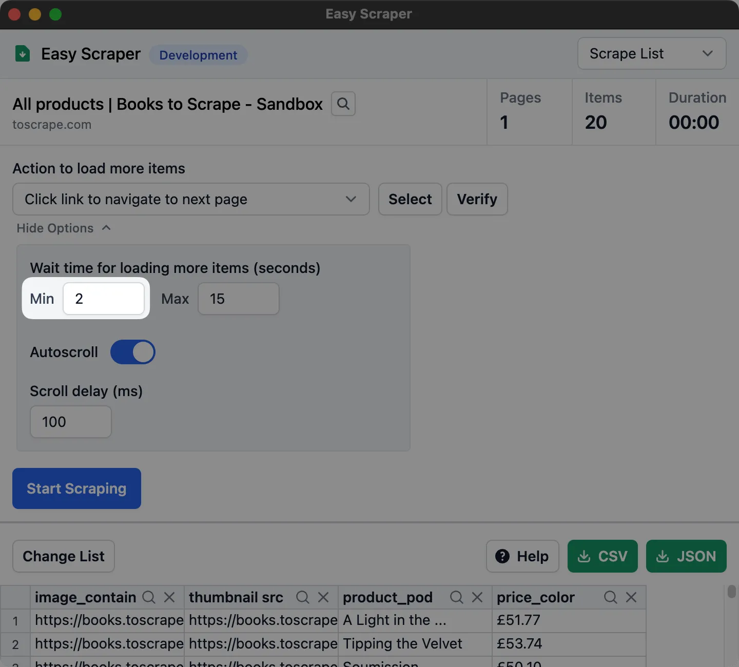 在这种情况下,可以忽略预览并直接运行抓取器。你会发现实际运行时数据能够正确显示。如果网站加载较慢,别忘了适当增加最小等待时间!