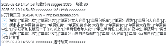 - 输入关键词:图中的流程首先指定了关键词的输入框。用户需要提供一组基准关键词(如“牛仔裤”,“单肩包”等),这些关键词将被输入到平台的搜索框中。例如,流程中会模拟在淘宝、拼多多、京东搜索框中输入“牛仔裤”。